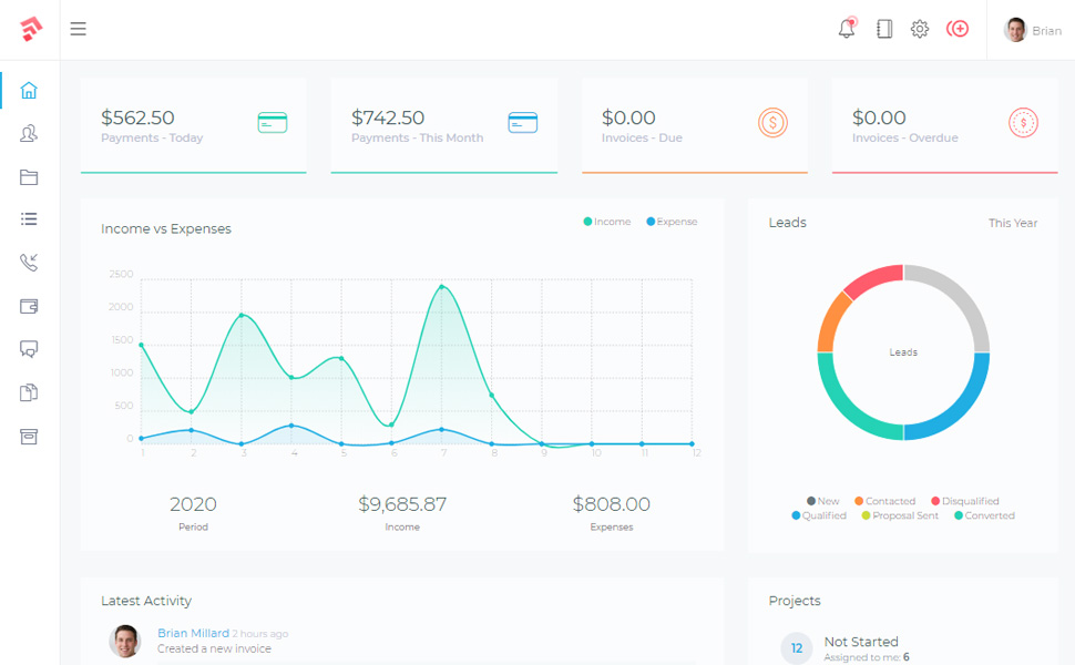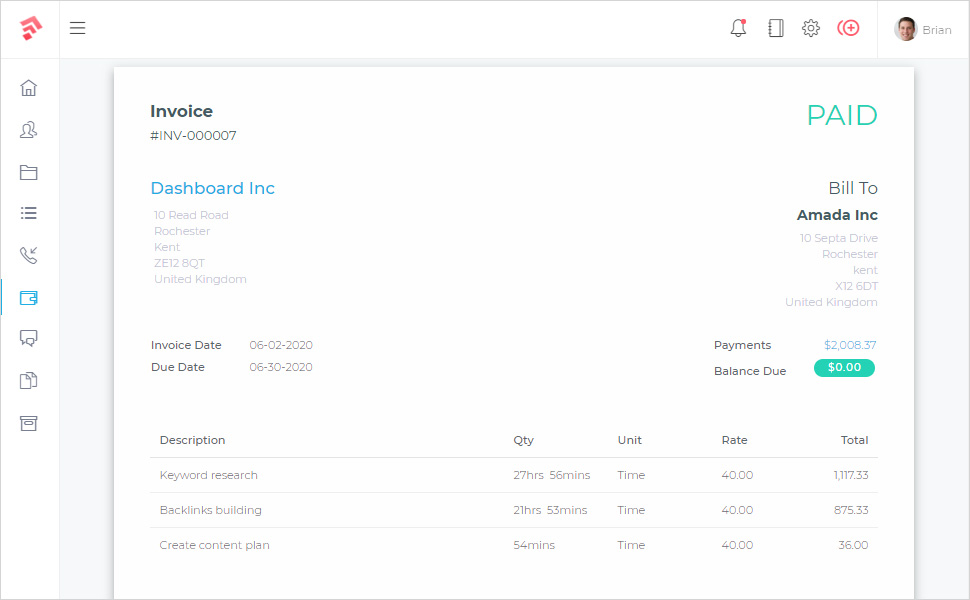 Our CRM gives you the right tools to manage, collaborate and complete your projects on time. Your clients will be happy and your team will be happy.- Easily see the progress of your project